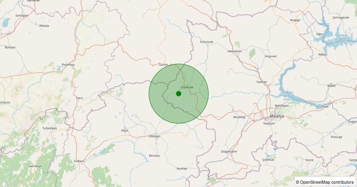 Son 7 gün içinde Darende - Palanga noktasından 100 km yarıçap içerisinde meydana gelen diğer depremler: