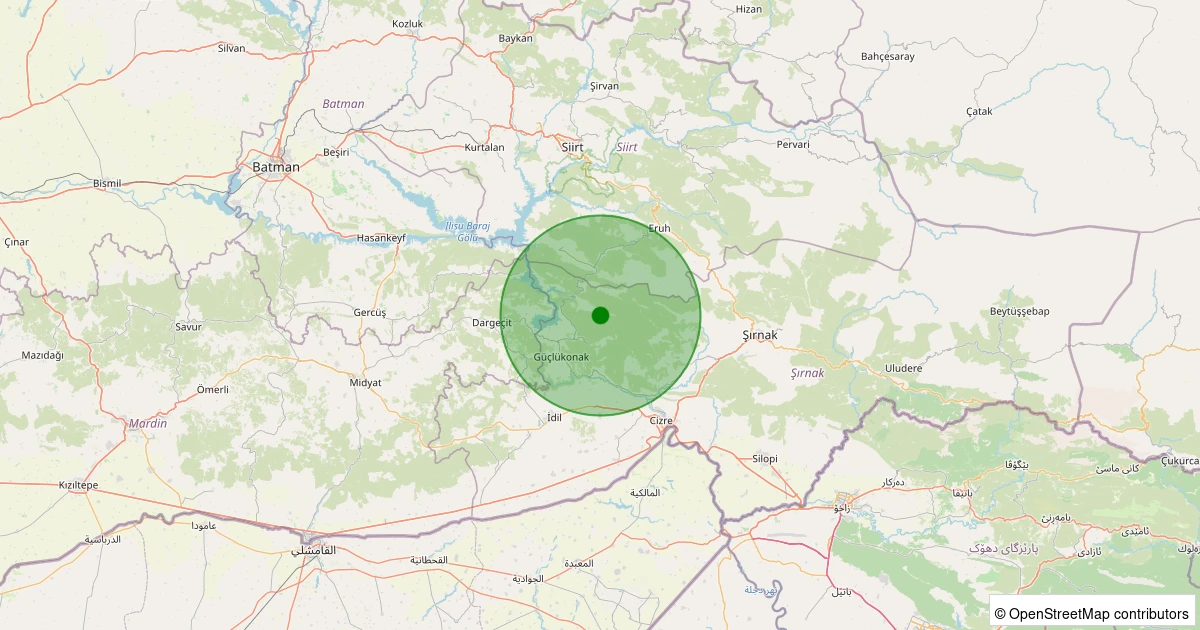 Son bir hafta içerisinde Şırnak şehri Güçlükonak noktasından 100 km yarıçap içerisinde toplamda 15 deprem kaydedilmiştir. Bu depremlerden en büyüğü 2.0 büyüklüğünde ve en sığ odaklısı 4.00 kilometre derinlikte gerçekleşmiştir.