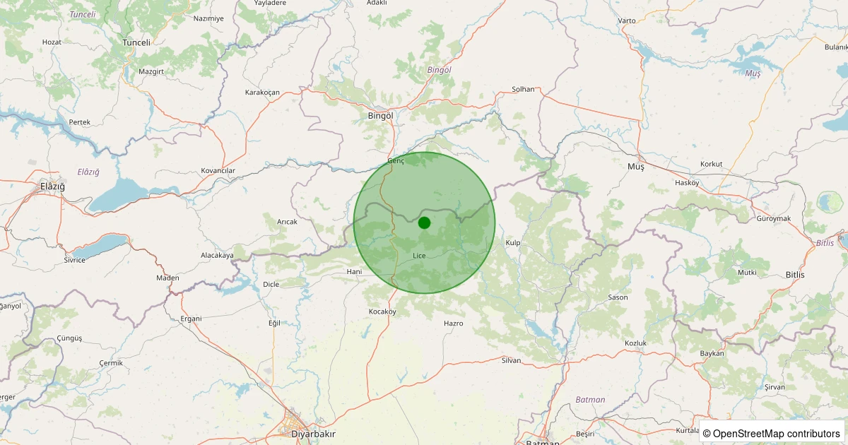 Son 7 gün içinde Lice - Saydamlı Köyü noktasından 100 km yarıçap içerisinde meydana gelen diğer depremler: