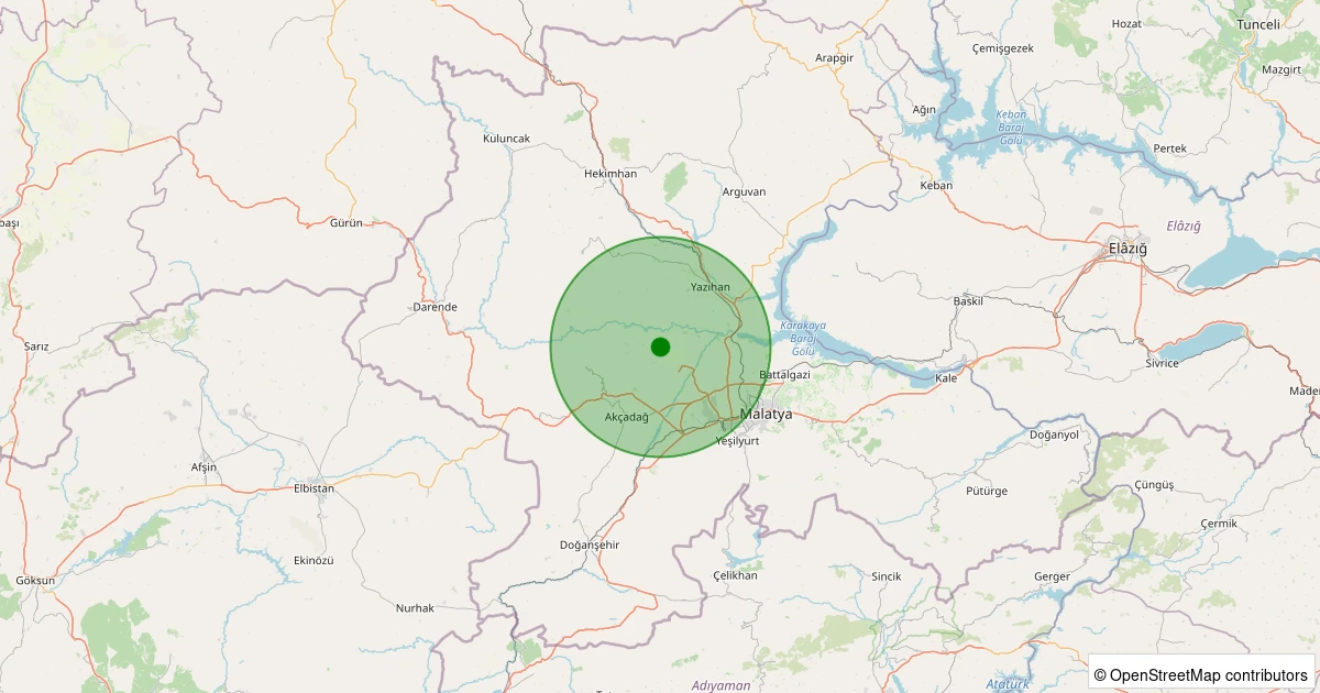 Son 7 gün içinde Akçadağ - Ilıcak noktasından 100 km yarıçap içerisinde meydana gelen diğer depremler: