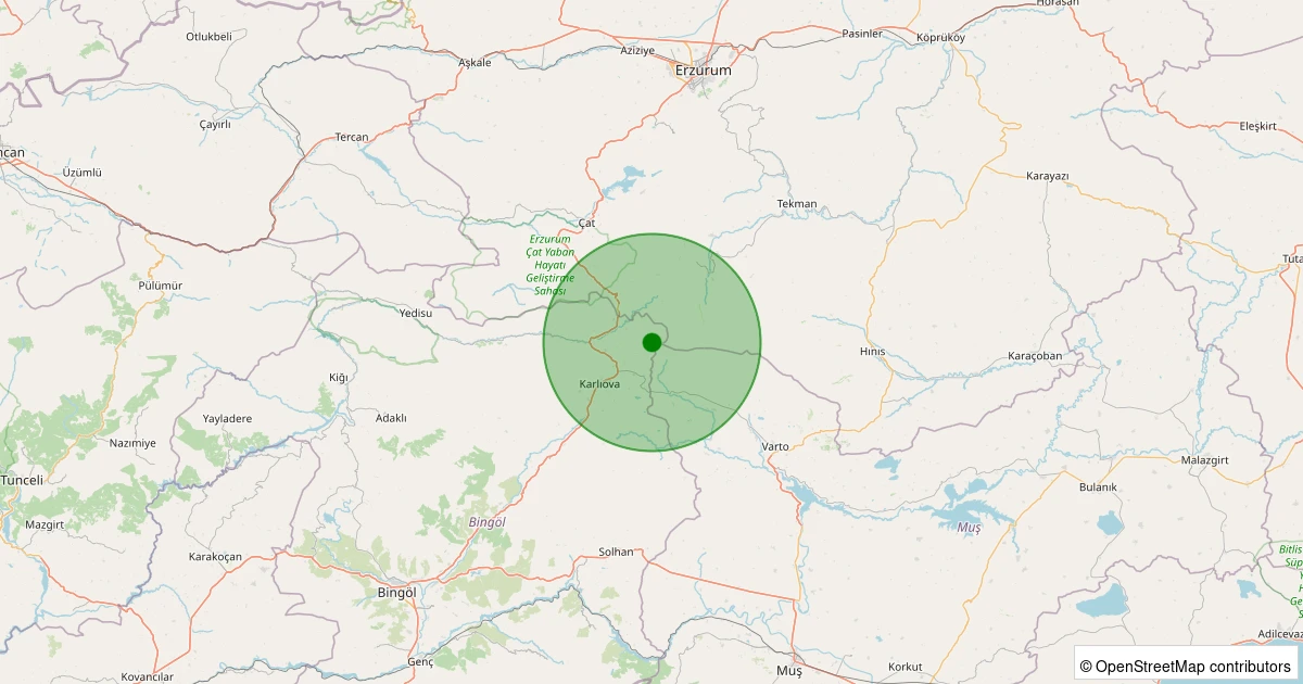 Son 7 gün içinde Karlıova - Tuzluca Köyü noktasından 100 km yarıçap içerisinde meydana gelen diğer depremler: