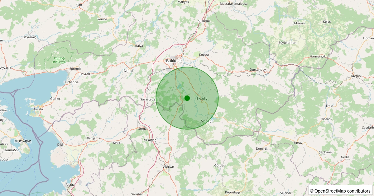 Son 7 gün içinde Bigadiç - Çayüstü noktasından 100 km yarıçap içerisinde meydana gelen diğer depremler: