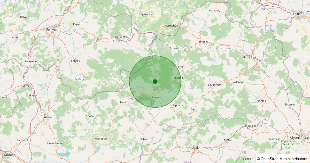 Son 7 gün içinde Simav - Yemişli Köyü noktasından 100 km yarıçap içerisinde meydana gelen diğer depremler: