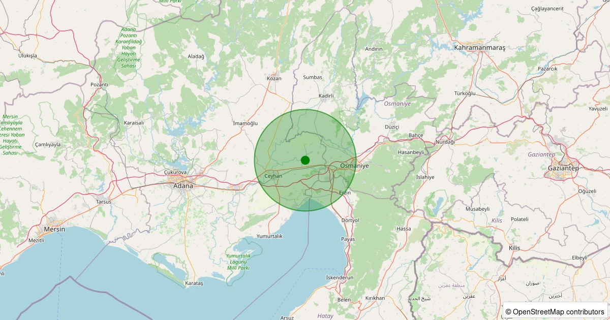 Son 7 gün içinde Ceyhan - Naşidiye noktasından 100 km yarıçap içerisinde meydana gelen diğer depremler: