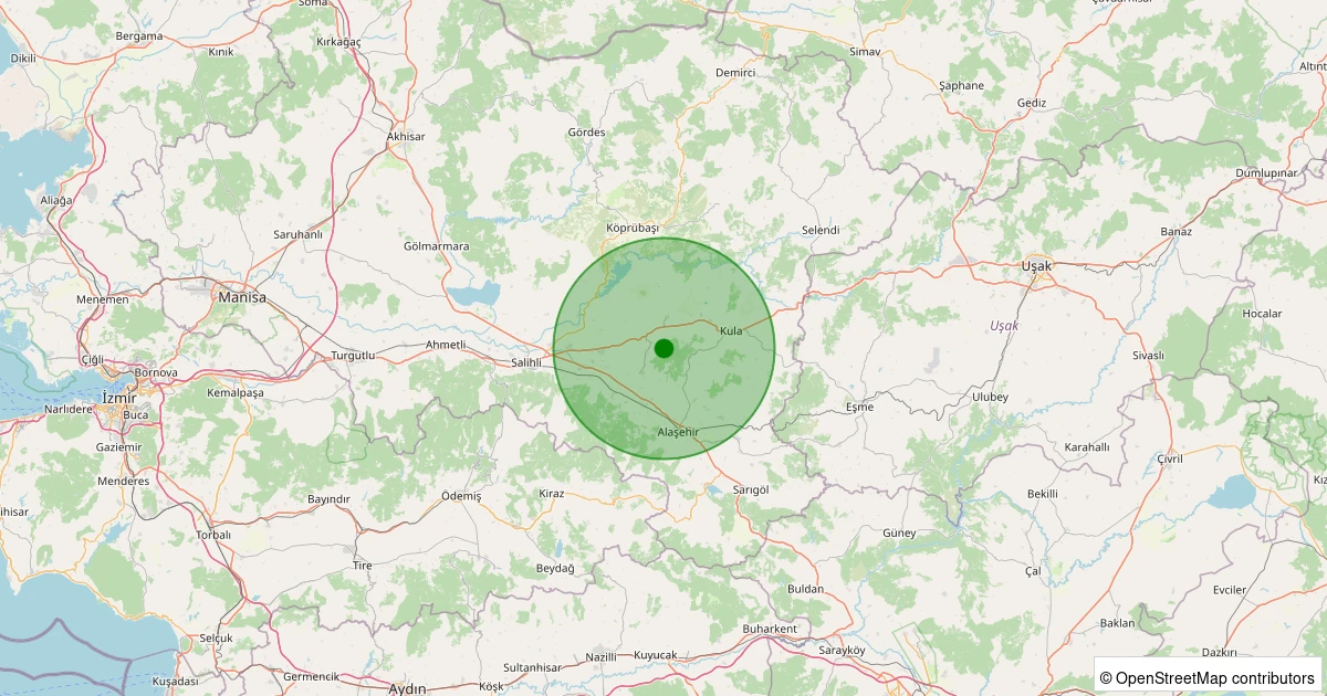 Son 7 gün içinde Kula - Esenyazı noktasından 100 km yarıçap içerisinde meydana gelen diğer depremler:
