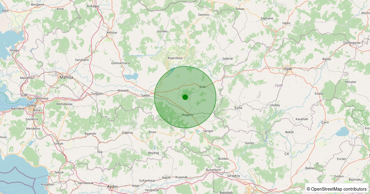 Son 7 gün içinde Kula - Hayallı noktasından 100 km yarıçap içerisinde meydana gelen diğer depremler: