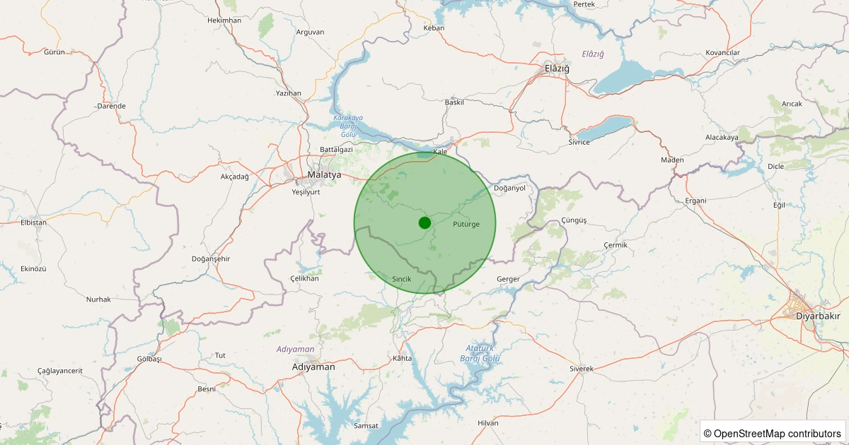 Son 7 gün içinde Pütürge - Alihan Köyü noktasından 100 km yarıçap içerisinde meydana gelen diğer depremler: