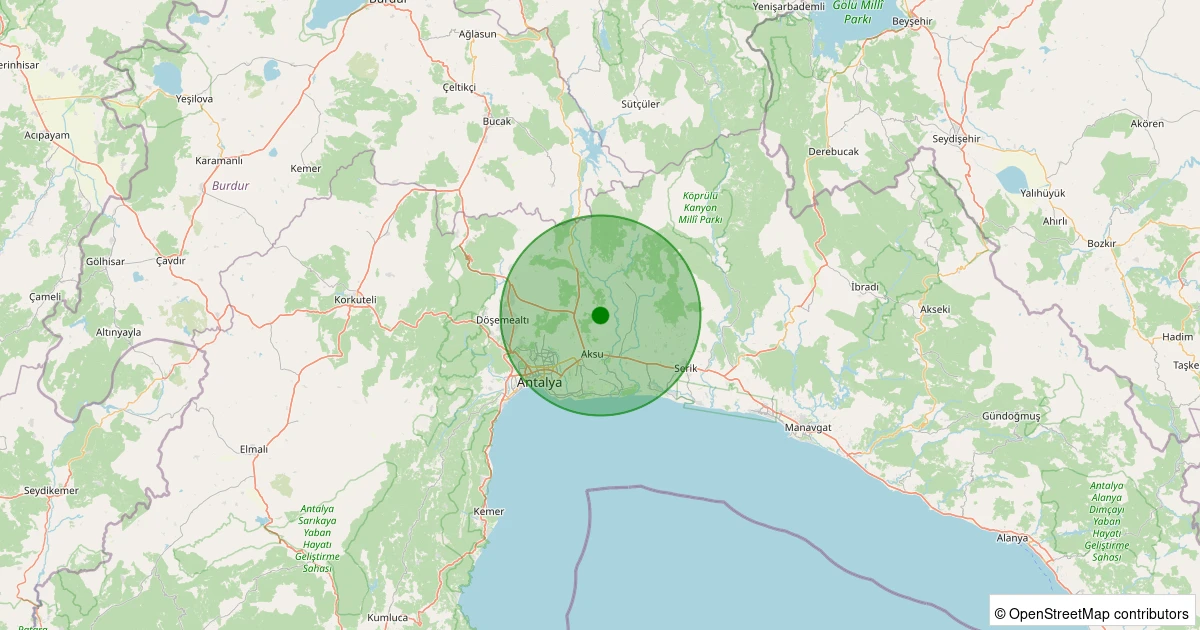 Son bir hafta içerisinde Antalya şehri Aksu - Murtuna noktasından 100 km yarıçap içerisinde toplamda 23 deprem kaydedilmiştir. Bu depremlerden en büyüğü 4.4 büyüklüğünde ve en sığ odaklısı 7.00 kilometre derinlikte gerçekleşmiştir.