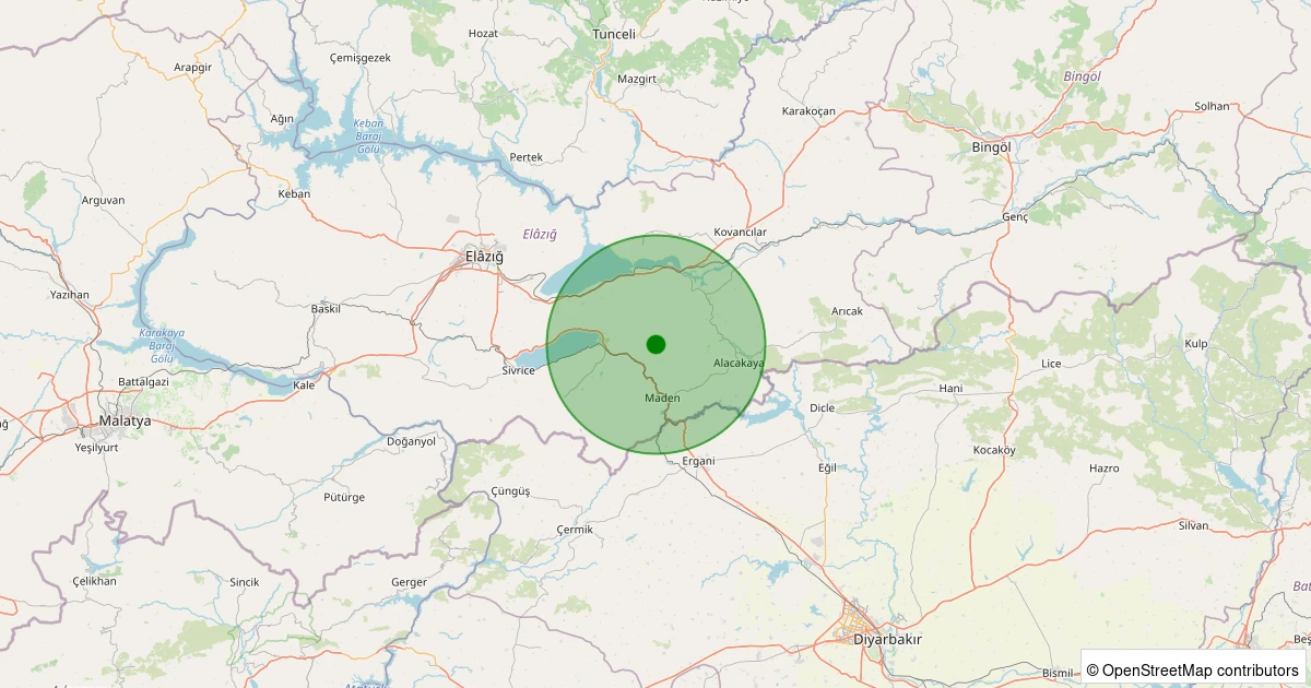 Son 7 gün içinde Maden - Tekevler Köyü noktasından 100 km yarıçap içerisinde meydana gelen diğer depremler: