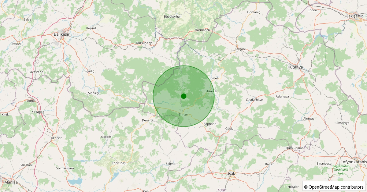 Son 7 gün içinde Simav - Karakoca Köyü noktasından 100 km yarıçap içerisinde meydana gelen diğer depremler: