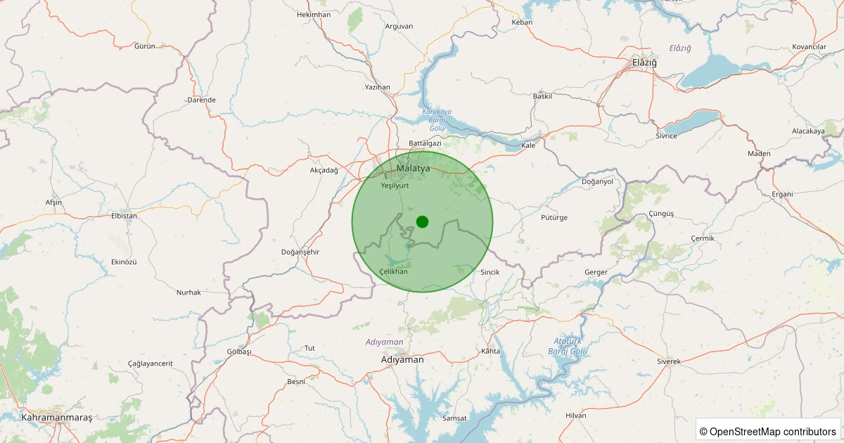 Son 7 gün içinde Yeşilyurt - Öncü noktasından 100 km yarıçap içerisinde meydana gelen diğer depremler: