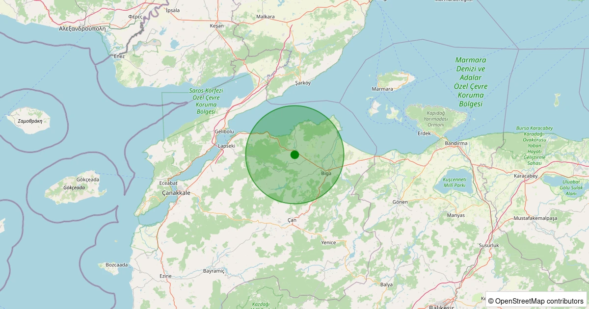 Son 7 gün içinde Biga - Balıklıçeşme Köyü noktasından 100 km yarıçap içerisinde meydana gelen diğer depremler: