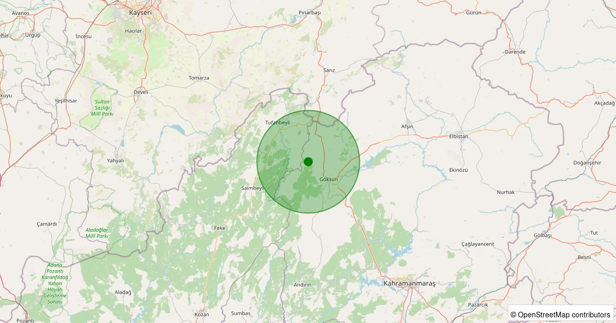 Son 7 gün içinde Göksun - Soğukpınar noktasından 100 km yarıçap içerisinde meydana gelen diğer depremler: