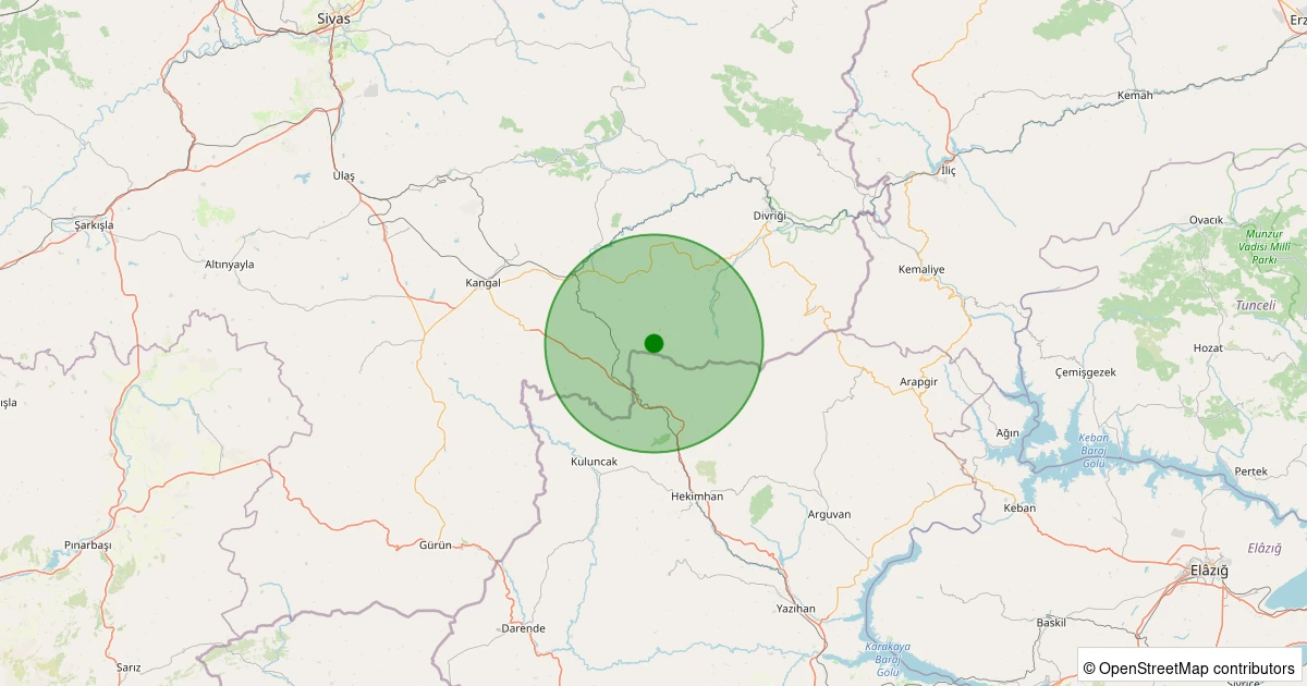 Son 7 gün içinde Kangal - Taşlı Köyü noktasından 100 km yarıçap içerisinde meydana gelen diğer depremler: