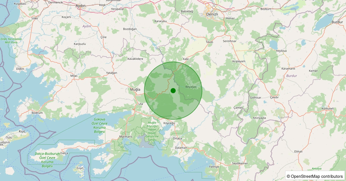 Son 7 gün içinde Menteşe noktasından 100 km yarıçap içerisinde meydana gelen diğer depremler: