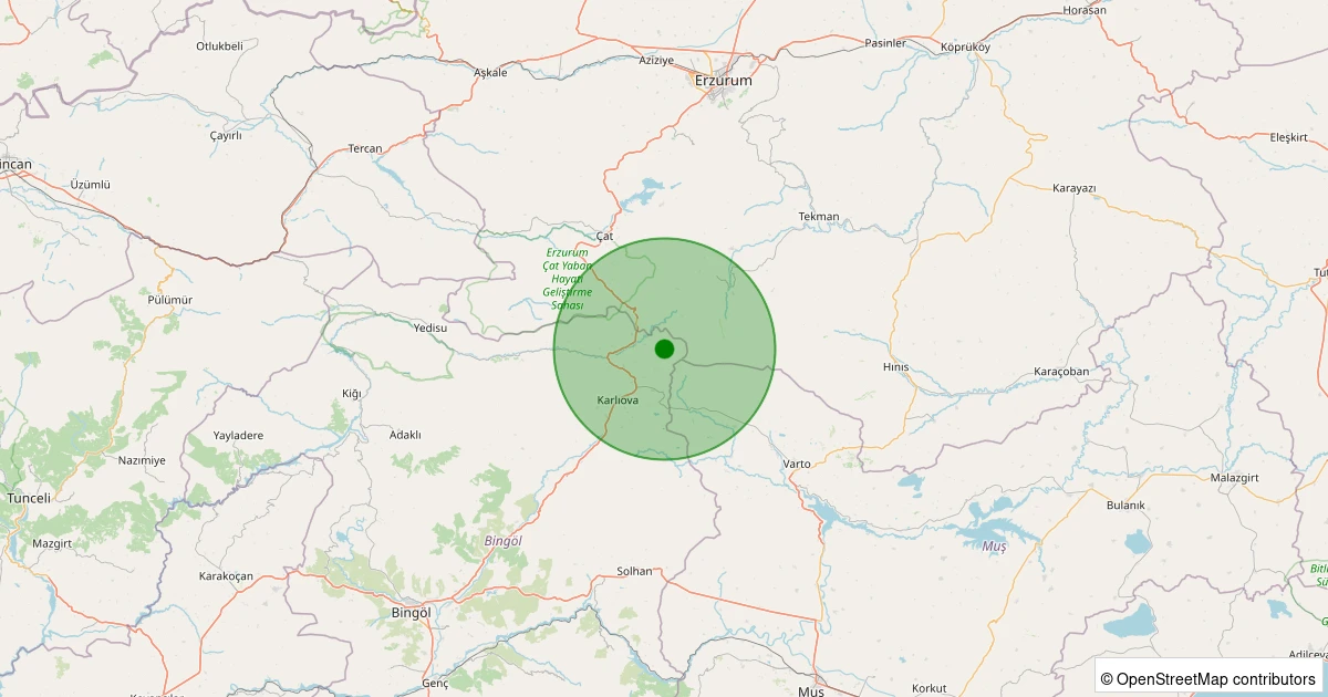 Son 7 gün içinde Karlıova - Mollaşakir Köyü noktasından 100 km yarıçap içerisinde meydana gelen diğer depremler: