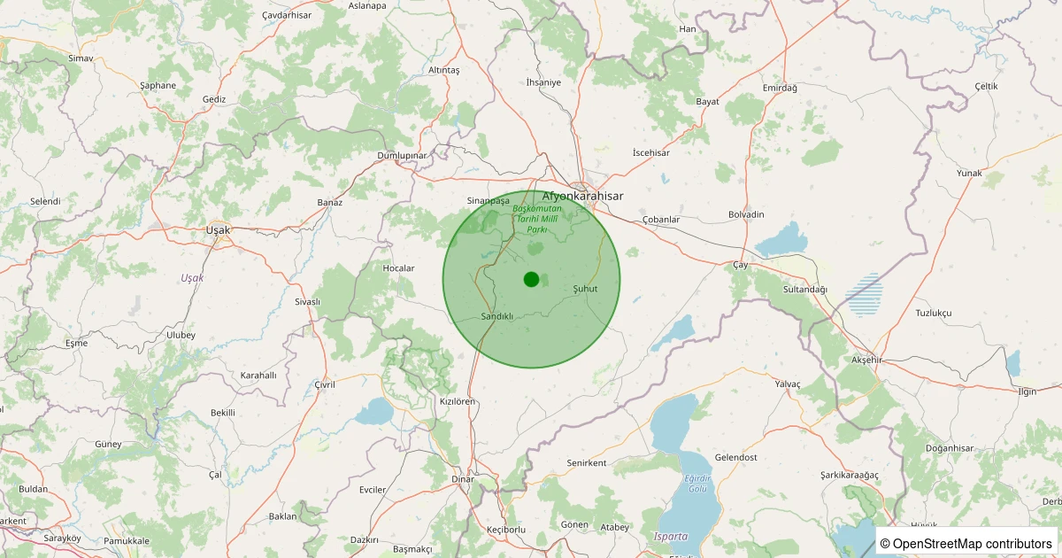 Son 7 gün içinde Sinanpaşa - Taşoluk/Çankaya noktasından 100 km yarıçap içerisinde meydana gelen diğer depremler: