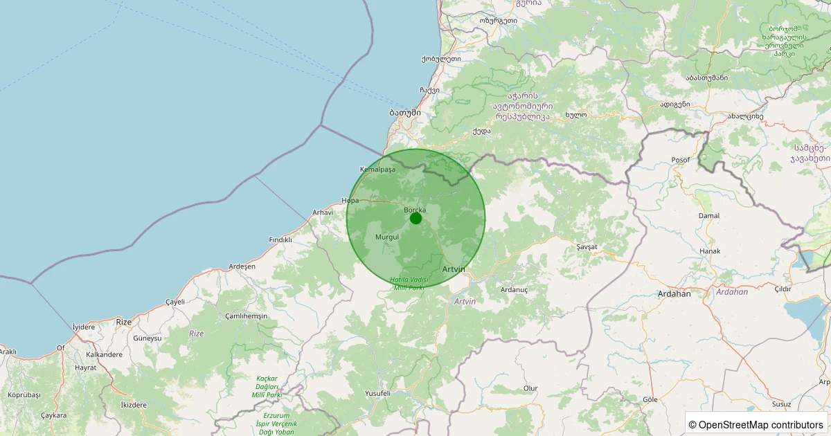 Son 7 gün içinde Borçka - Taraklı Köyü noktasından 100 km yarıçap içerisinde meydana gelen diğer depremler: