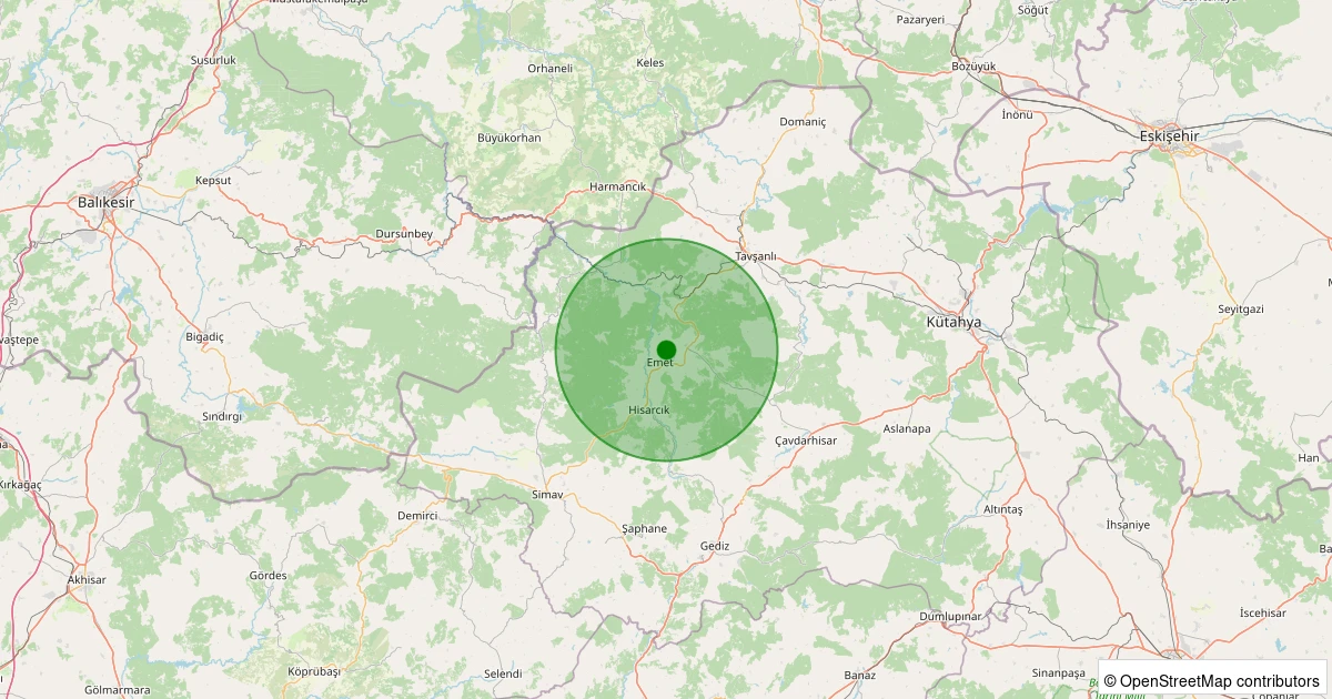 Son 7 gün içinde Emet - Çalcağıl noktasından 100 km yarıçap içerisinde meydana gelen diğer depremler: