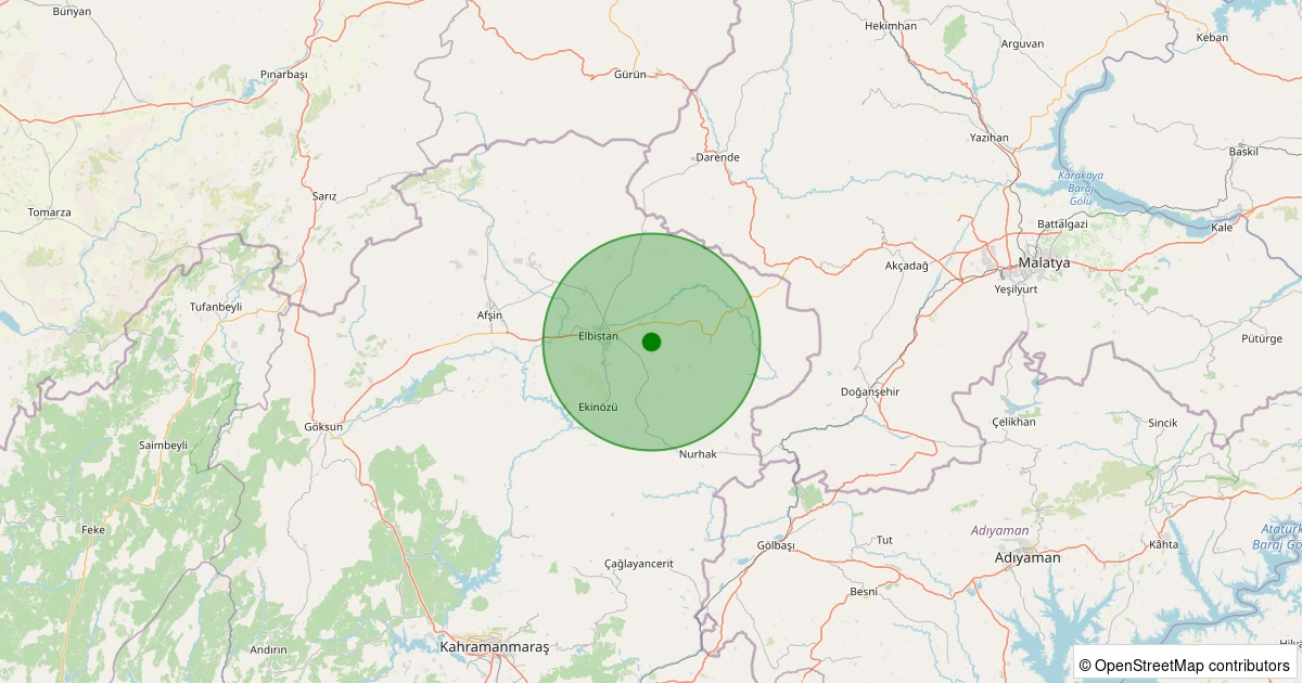 Son 7 gün içinde Elbistan - Akbayır/Yavuzselim noktasından 100 km yarıçap içerisinde meydana gelen diğer depremler: