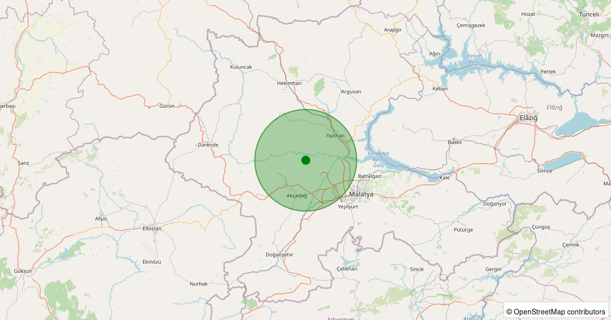 Son 7 gün içinde Akçadağ - Keklikpınar noktasından 100 km yarıçap içerisinde meydana gelen diğer depremler: