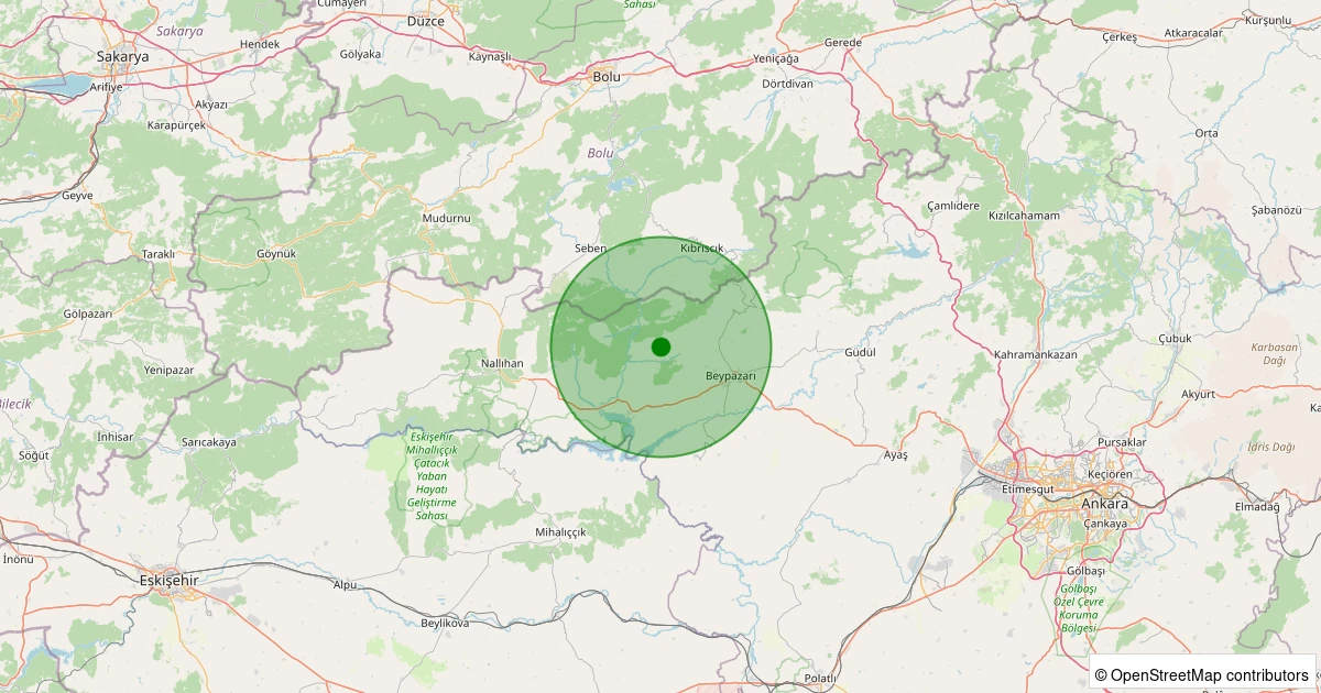 Son 7 gün içinde Beypazarı - Hırkatepe noktasından 100 km yarıçap içerisinde meydana gelen diğer depremler: