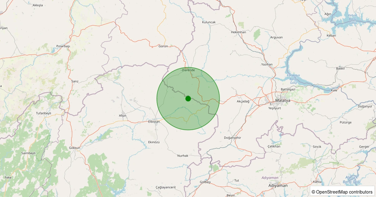 Son 7 gün içinde Elbistan - Yalıntaş Köyü noktasından 100 km yarıçap içerisinde meydana gelen diğer depremler: