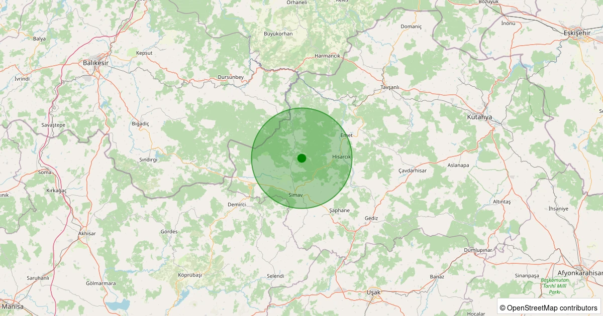 Son 7 gün içinde Simav - Maden Köyü noktasından 100 km yarıçap içerisinde meydana gelen diğer depremler:
