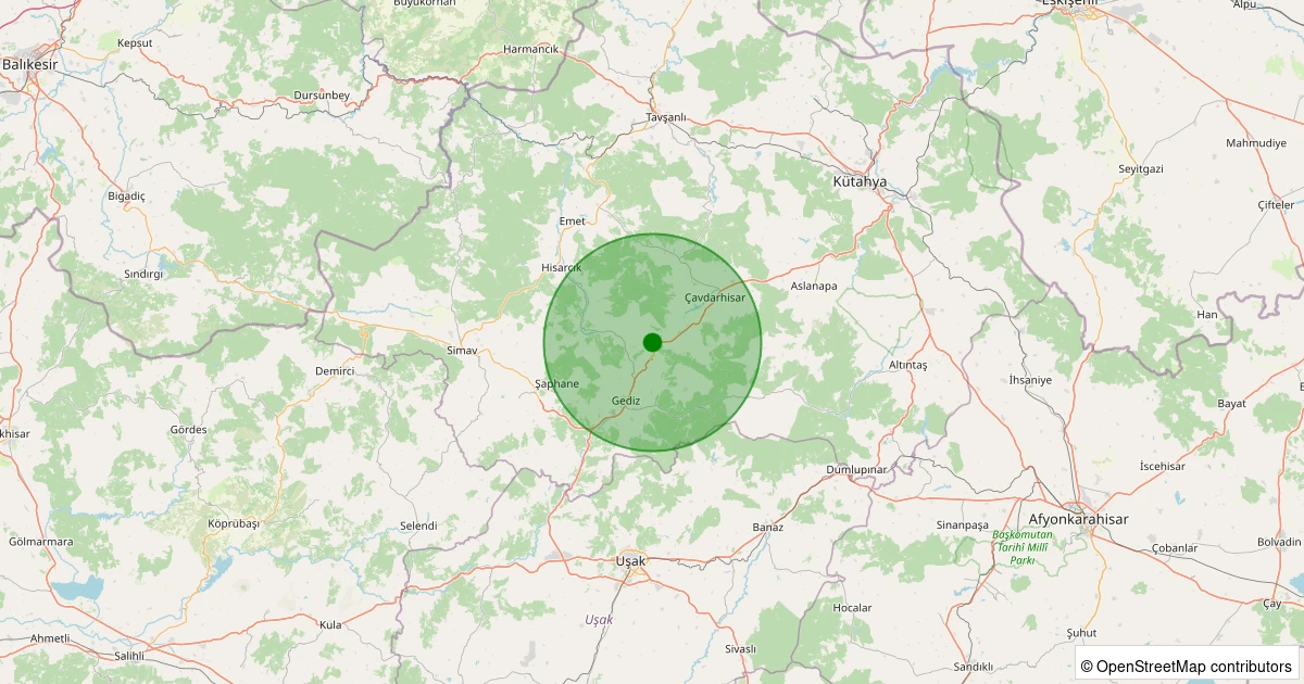 Son 7 gün içinde Gediz - Yunuslar/Yunusemre Köyü noktasından 100 km yarıçap içerisinde meydana gelen diğer depremler: