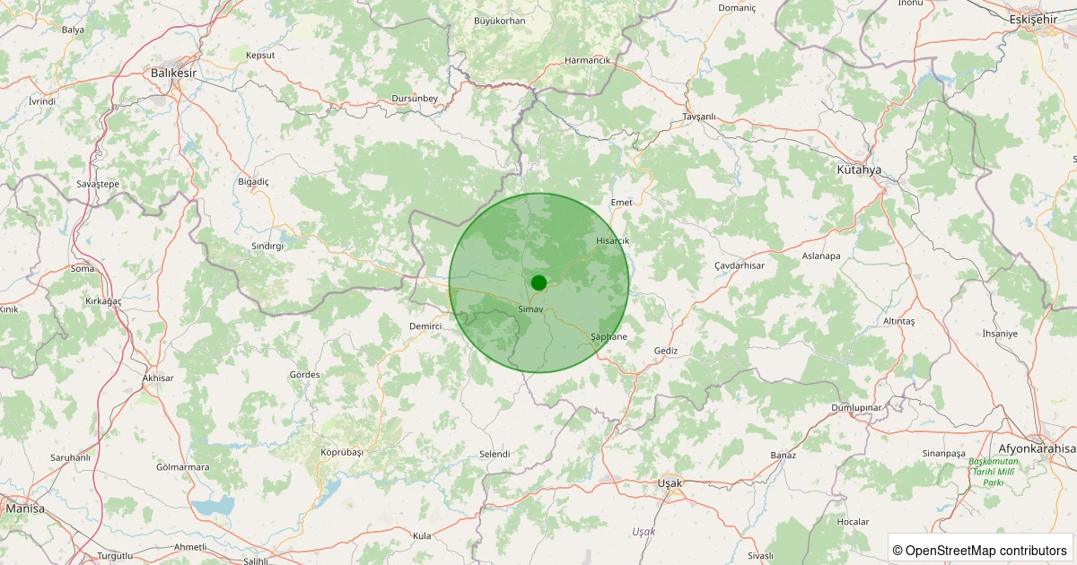 Son 7 gün içinde Simav - Naşa/Fatih noktasından 100 km yarıçap içerisinde meydana gelen diğer depremler: