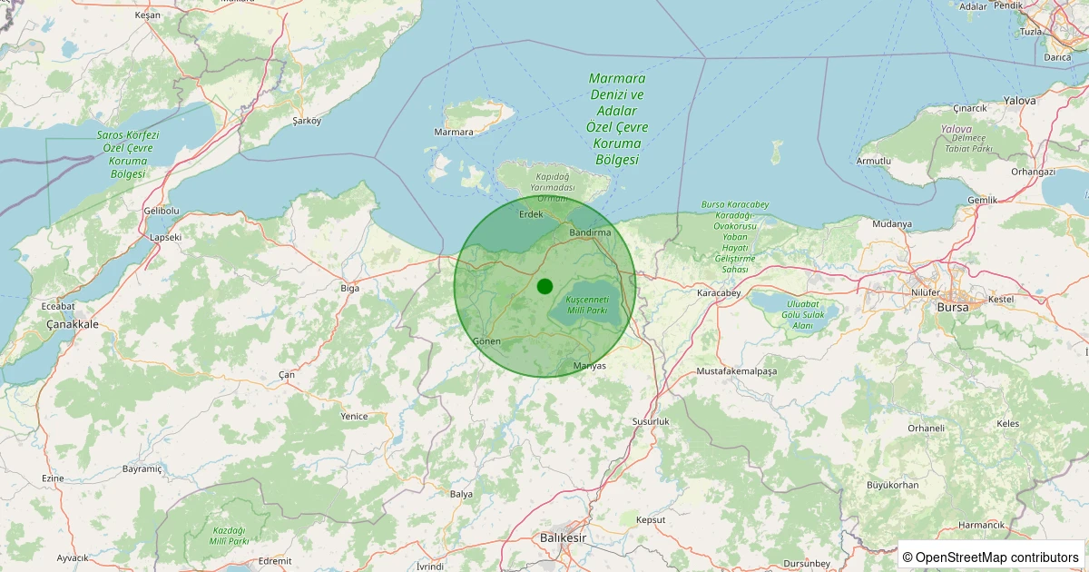Son 7 gün içinde Gönen - Killik noktasından 100 km yarıçap içerisinde meydana gelen diğer depremler: