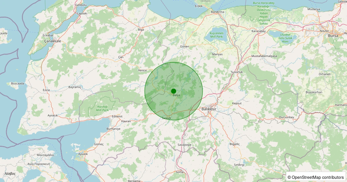 Son 7 gün içinde Balya - Yazlık Köyü noktasından 100 km yarıçap içerisinde meydana gelen diğer depremler: