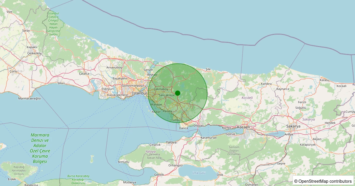 Son 7 gün içinde Pendik - Kurtdoğmuş noktasından 100 km yarıçap içerisinde meydana gelen diğer depremler: