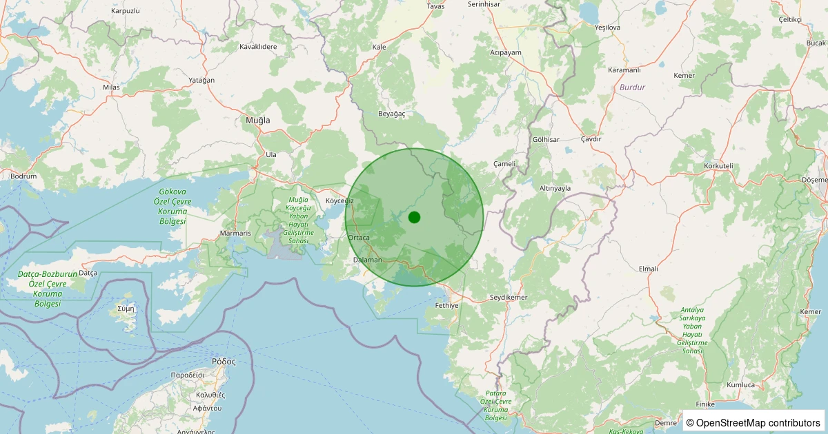 Son 7 gün içinde Dalaman - Bozbel noktasından 100 km yarıçap içerisinde meydana gelen diğer depremler: