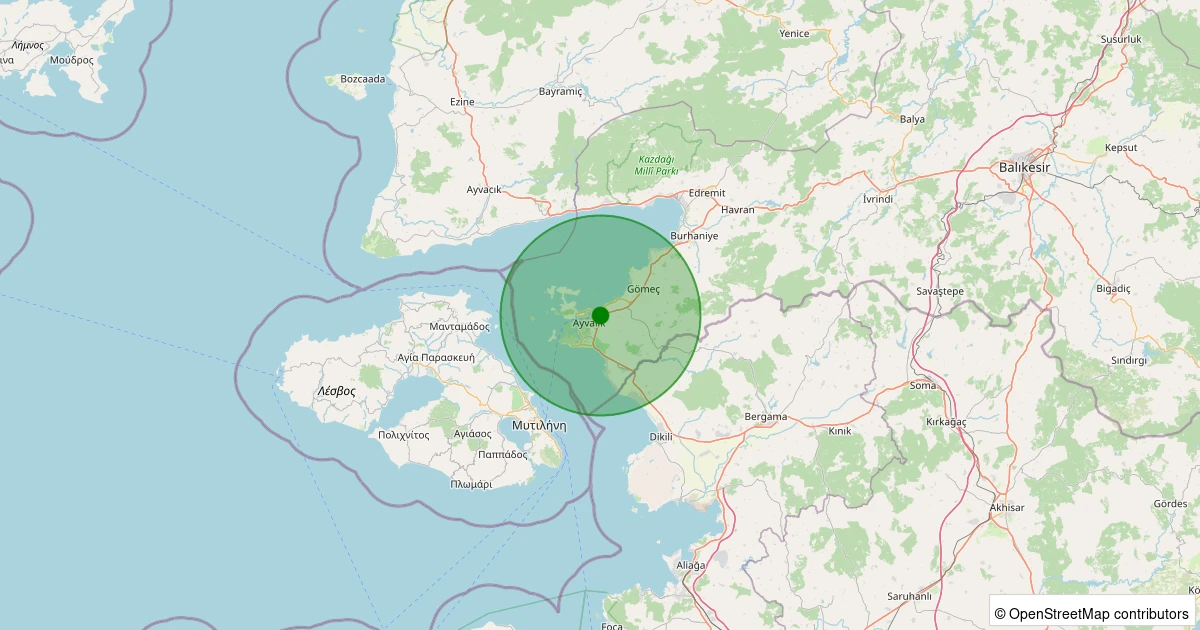 Son 7 gün içinde Ayvalık noktasından 100 km yarıçap içerisinde meydana gelen diğer depremler: