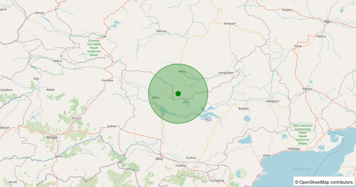 Son 7 gün içinde Hınıs - Divanhüseyin Köyü noktasından 100 km yarıçap içerisinde meydana gelen diğer depremler:
