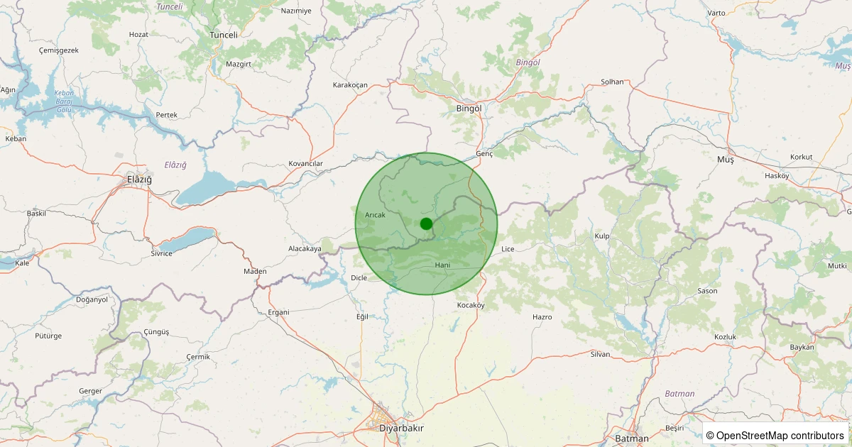 Son 7 gün içinde Genç - Direkli Köyü noktasından 100 km yarıçap içerisinde meydana gelen diğer depremler: