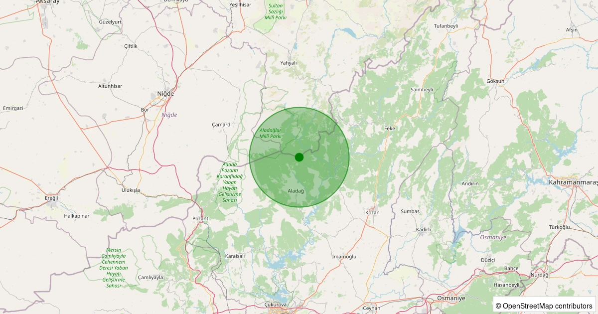 Son 7 gün içinde Aladağ noktasından 100 km yarıçap içerisinde meydana gelen diğer depremler: