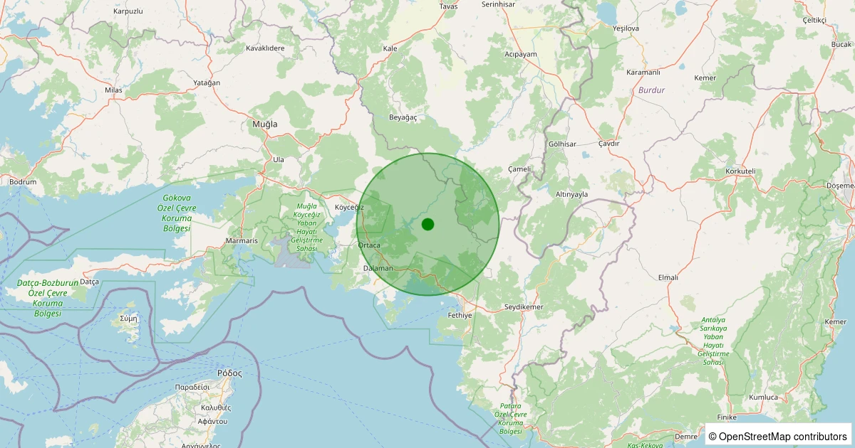 Son 7 gün içinde Dalaman - Bozbel noktasından 100 km yarıçap içerisinde meydana gelen diğer depremler: