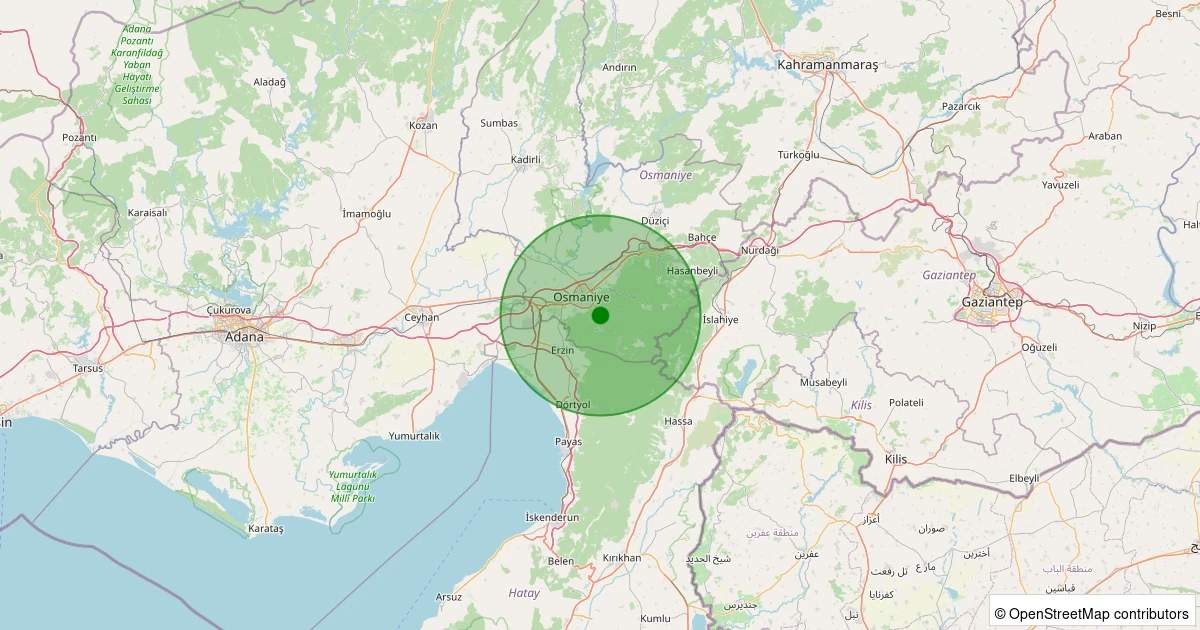 Son bir hafta içerisinde Osmaniye şehri Merkez - Gebeli Köyü noktasından 100 km yarıçap içerisinde toplamda 154 deprem kaydedilmiştir. Bu depremlerden en büyüğü 4.1 büyüklüğünde ve en sığ odaklısı 0.00 kilometre derinlikte gerçekleşmiştir.