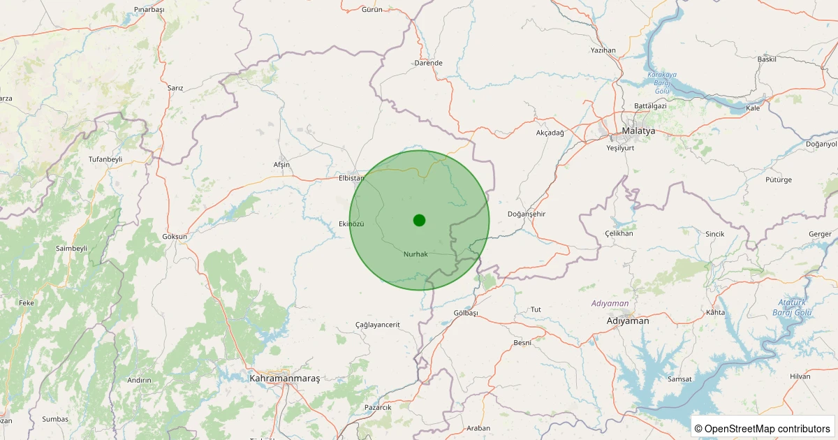 Son 7 gün içinde Nurhak noktasından 100 km yarıçap içerisinde meydana gelen diğer depremler: