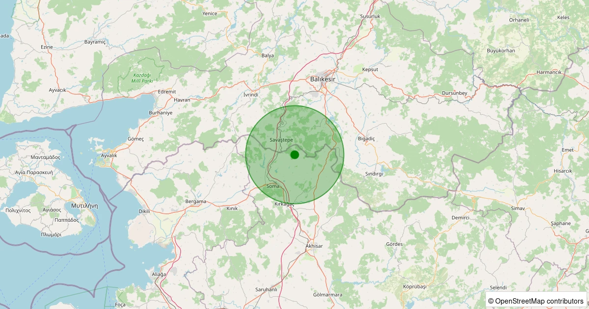 Son 7 gün içinde Soma - Türk Pıyale noktasından 100 km yarıçap içerisinde meydana gelen diğer depremler: