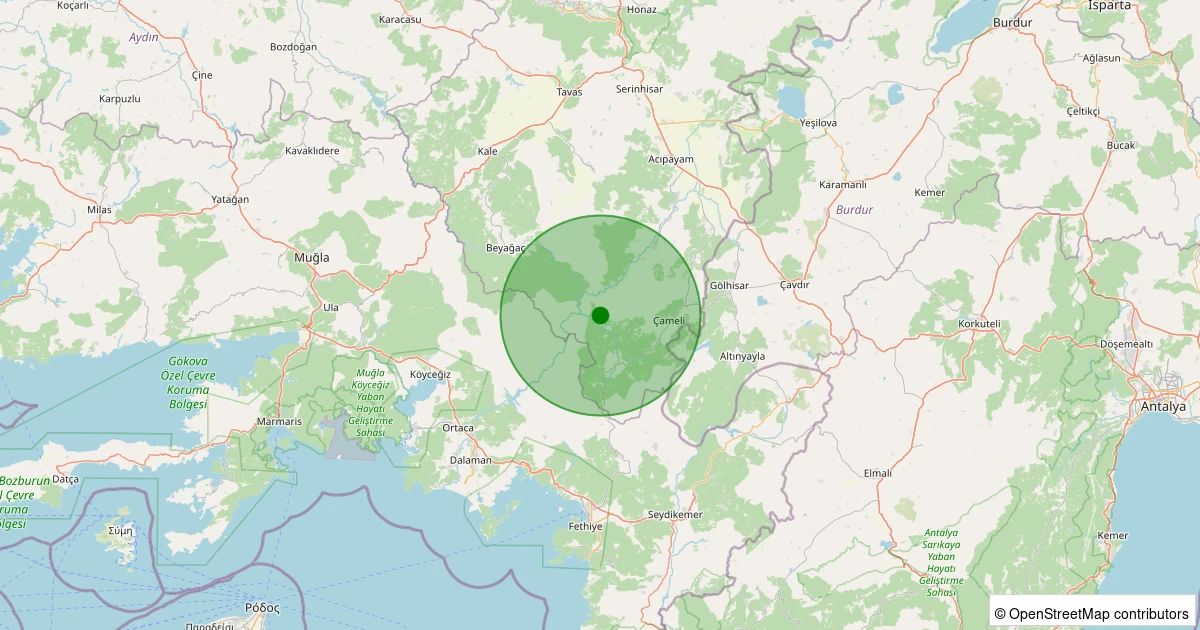Son 7 gün içinde Acıpayam - Suçatı noktasından 100 km yarıçap içerisinde meydana gelen diğer depremler: