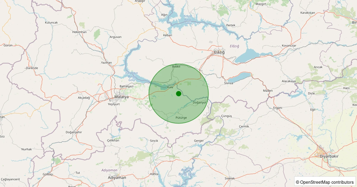 Son bir hafta içerisinde Malatya şehri Kale - Yenidamlar Köyü noktasından 100 km yarıçap içerisinde toplamda 296 deprem kaydedilmiştir. Bu depremlerden en büyüğü 3.0 büyüklüğünde ve en sığ odaklısı 0.00 kilometre derinlikte gerçekleşmiştir.