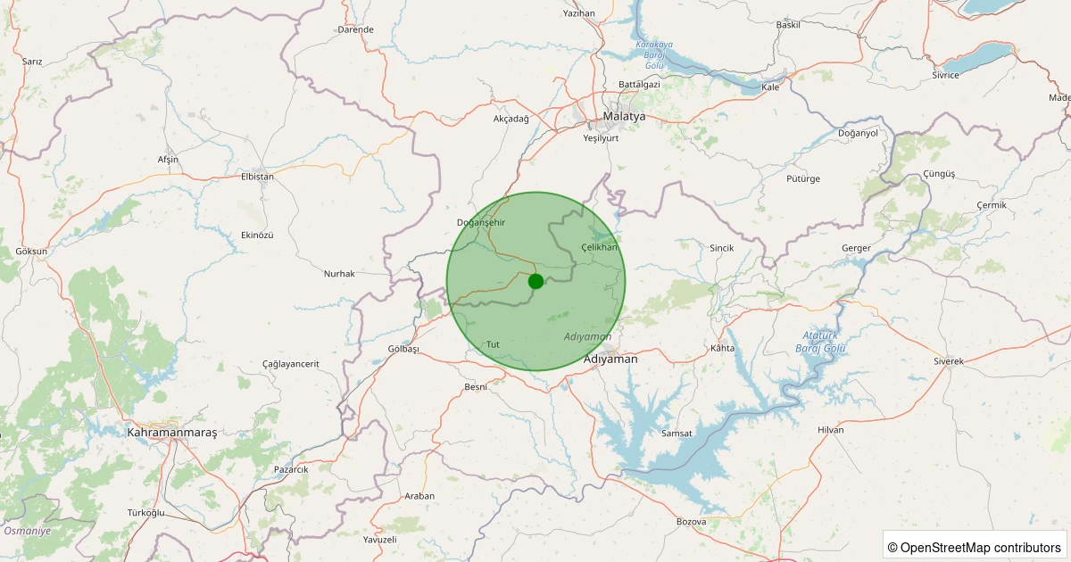 Son 7 gün içinde Doğanşehir - Gedikağzı noktasından 100 km yarıçap içerisinde meydana gelen diğer depremler: