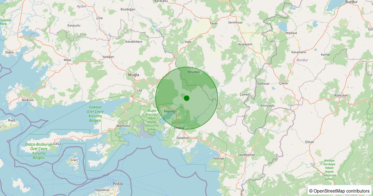 Son 7 gün içinde Köyceğiz - Çayhisar noktasından 100 km yarıçap içerisinde meydana gelen diğer depremler: