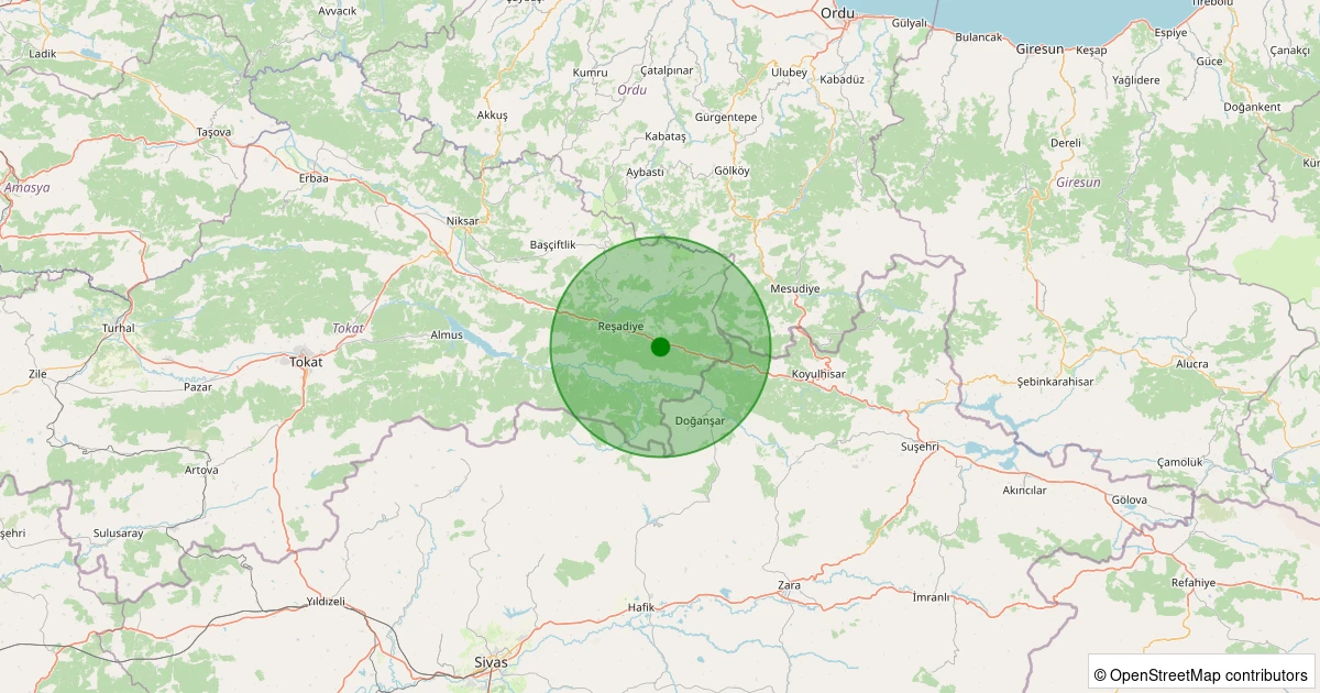 Son 7 gün içinde Reşadiye - Bostankolu Köyü noktasından 100 km yarıçap içerisinde meydana gelen diğer depremler: