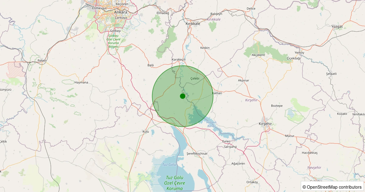 Son 7 gün içinde Bala - Küçükcamili noktasından 100 km yarıçap içerisinde meydana gelen diğer depremler: