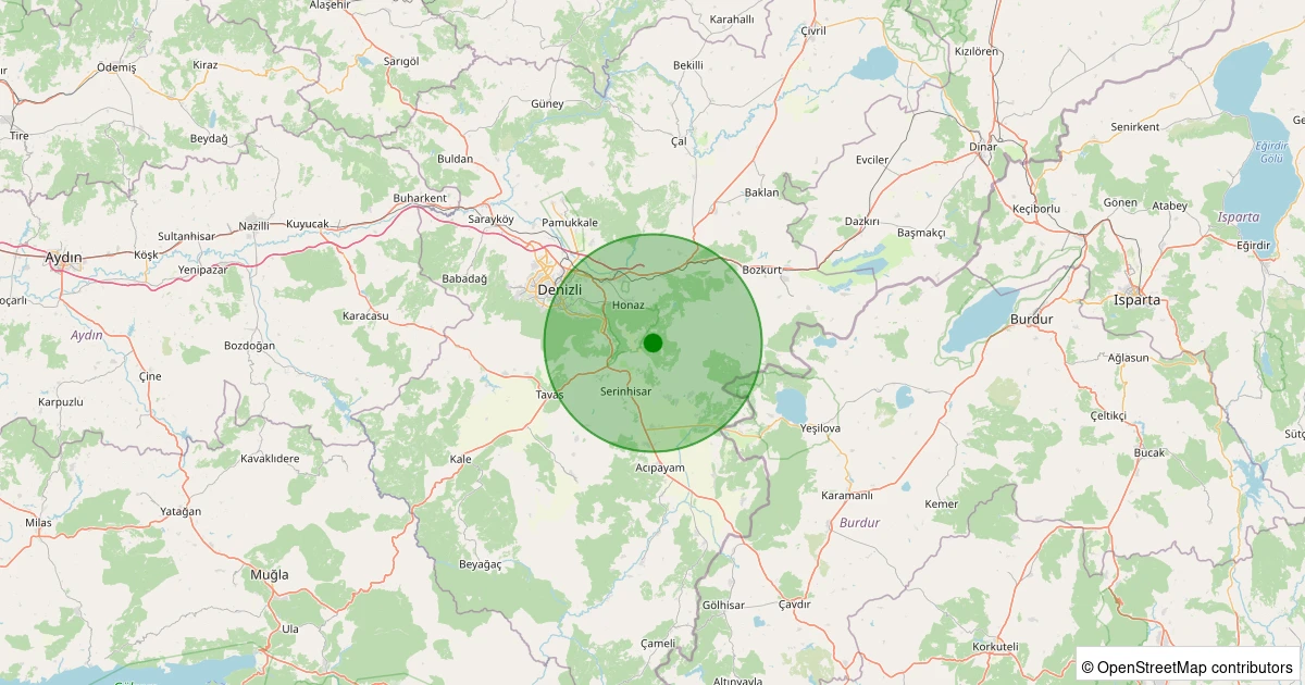 Son 7 gün içinde Serinhisar - Kocapınar noktasından 100 km yarıçap içerisinde meydana gelen diğer depremler: