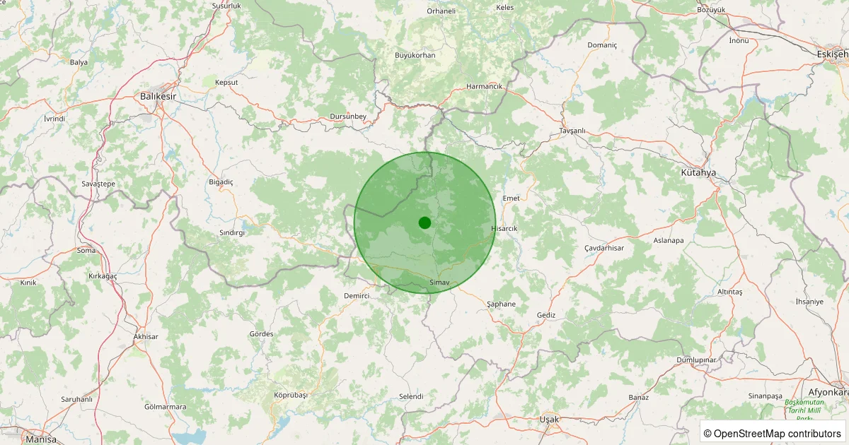 Son 7 gün içinde Simav - Karakoca Köyü noktasından 100 km yarıçap içerisinde meydana gelen diğer depremler: